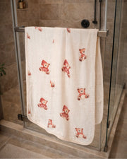 This Kids Bamboo Bath Towel is thoughtfully designed for babies and toddlers aged 0–5 years. Made from 100% bamboo gauze, it is exceptionally ultra-soft, lightweight, and gentle on delicate skin. Naturally hypoallergenic and highly absorbent, it keeps your little one dry, cozy, and comfortable after every bath. 3 icons (Ultrasoft, hypoallergenic, 3x absorbent)